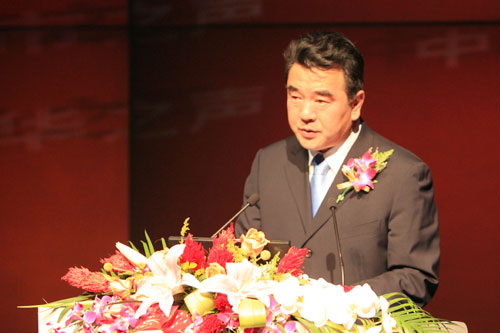 中央人民廣播電臺臺長王求在發(fā)布會上致辭(中廣網(wǎng)記者紀樂樂 陳曉冉 攝)