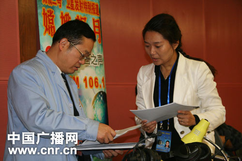 特邀嘉賓北京飛控中心總工程師助理、研究員宋軍(左)做客中國之聲