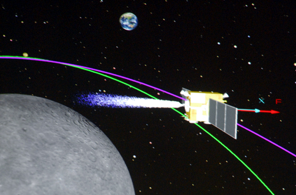 第一次近月制動的成功對于“嫦娥二號”衛(wèi)星來說是整個飛行過程中非常重要的一個標(biāo)志。據(jù)介紹,“嫦娥二號”完成首次近月制動后,將會進(jìn)入一個近月點在100多公里,遠(yuǎn)月點在8000多公里的橢圓軌道。由于還沒有進(jìn)入環(huán)月軌道,這期間“嫦娥二號”的飛行姿態(tài)是對日定向,衛(wèi)星依然繞著軌道方向飛行,但姿態(tài)擺動指向太陽,帆板也對著太陽,可以聚集能量。