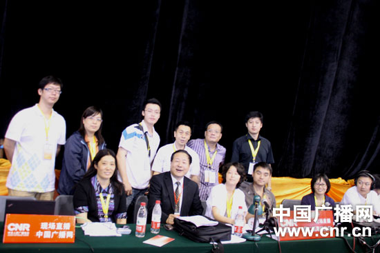 中央臺(tái)副總編輯杜嗣琨(前排左二)蒞臨直播現(xiàn)場(chǎng)。中廣網(wǎng)記者 王曉宇 攝