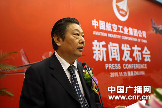 中航工業(yè)集團(tuán)黨組書記、總經(jīng)理林左鳴介紹中航參展情況(中廣網(wǎng)記者邱翔 攝)