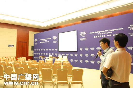 15日,2010夏季達沃斯論壇的閉幕式將在這間名為“達沃斯”的會議廳舉行。(中廣網(wǎng)記者朱虹 攝)