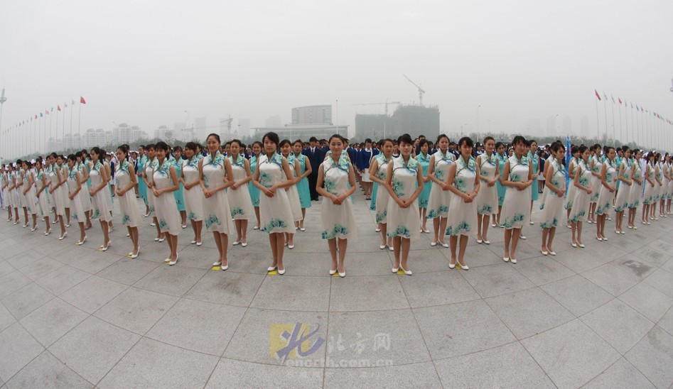 9月3日是2010天津夏季達(dá)沃斯論壇倒計(jì)時(shí)10天,團(tuán)市委、市青年志愿者協(xié)會(huì)在梅江會(huì)展中心前廣場隆重舉行2010天津夏季達(dá)沃斯論壇志愿者上崗儀式。2200名達(dá)沃斯志愿者正式上崗。(攝影付文超)