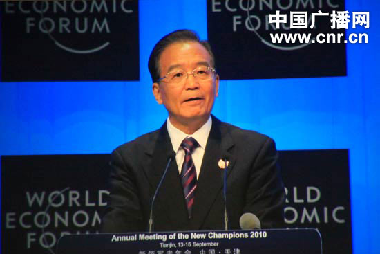 新華網(wǎng)天津9月13日電 世界經(jīng)濟(jì)論壇2010年新領(lǐng)軍者年會(huì)(夏季達(dá)沃斯論壇)13日在天津開(kāi)幕,國(guó)務(wù)院總理溫家寶出席開(kāi)幕式并致辭,新華網(wǎng)進(jìn)行現(xiàn)場(chǎng)直播。溫家寶在致辭中說(shuō),如果沒(méi)有一定的經(jīng)濟(jì)增長(zhǎng)速度,實(shí)現(xiàn)充分就業(yè),提高人民福祉就是一句空話。