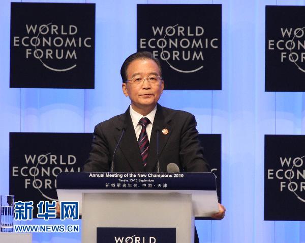 9月13日,世界經(jīng)濟(jì)論壇2010年新領(lǐng)軍者年會(簡稱“夏季達(dá)沃斯論壇”)在天津開幕。中國國務(wù)院總理溫家寶出席開幕式并致辭。新華社記者丁林?jǐn)z