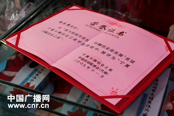 趙萍算是這條街的領(lǐng)軍人物之一;刈鍕D女向來是主持家務(wù),贍老扶幼。20多年前,她頂著世俗的壓力,在丈夫的支持下開始干些“拋頭露面”的事情。她和想法一致的姐妹們一塊商量,把大伙刺繡的作品繡好后交給她們統(tǒng)一出售。這項(xiàng)回族婦女的傳統(tǒng)工藝不僅受到了消費(fèi)者的青睞,也給她們賺回了大把的票子。正是在一些人的冷嘲嘲諷中,“趙萍們”掘得了人生的第一桶金,每天幾塊錢的收入也會(huì)讓她們欣喜若狂。她們不斷擴(kuò)大自己經(jīng)營(yíng)范圍,從外地購(gòu)進(jìn)回族群眾喜愛的帽子、頭巾、成衣、布匹等進(jìn)行銷售。漸漸地,越來越多的姐妹們加入了她們的行列。她們的陣地,也由以前的擺攤設(shè)點(diǎn)發(fā)展到店鋪經(jīng)營(yíng);刈鍕D女?dāng)[來英的服裝店每年年收入都在3、4萬元吶。