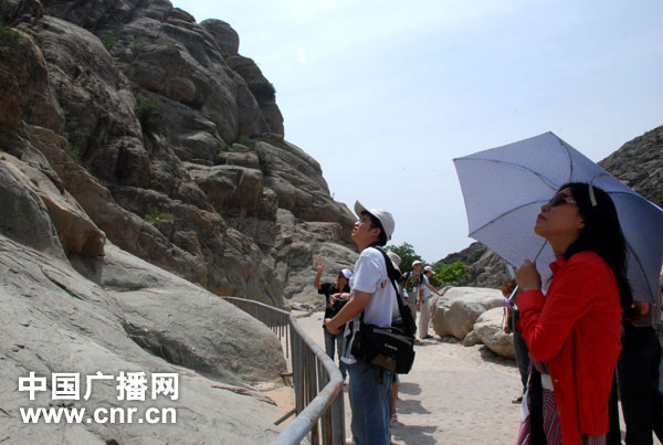 游客被神秘的巖畫吸引(攝影 馬玲艷)