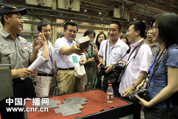 網(wǎng)絡(luò)媒體寧夏行報(bào)道組記者參觀銀川小巨人機(jī)床有限公司(攝影 馬玲艷)