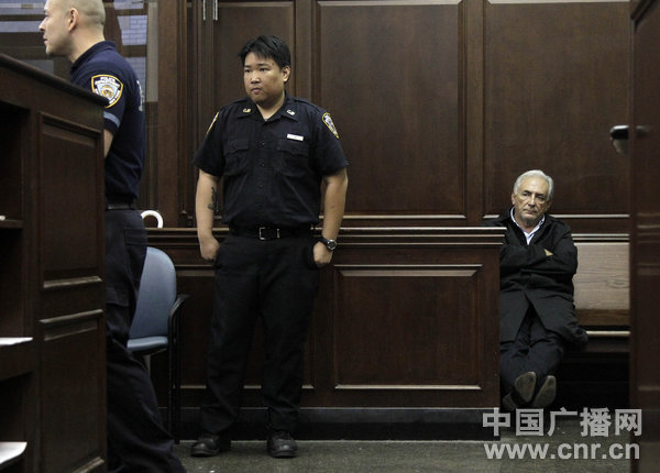 2011年5月16日,美國(guó)紐約,國(guó)際貨幣基金組織(IMF)總裁卡恩(Dominique Strauss-Kahn)在曼哈頓刑事法院提訊,提訊中被禁止保釋,他將繼續(xù)留監(jiān)候?qū)彙?/p>