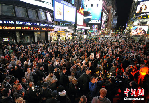 美國總統(tǒng)奧巴馬1日晚突然召開記者會,正式宣布基地組織頭目本·拉登已經(jīng)死亡。在奧巴馬發(fā)表演講前后,許多美國民眾已高舉國旗聚集到時代廣場附近,他們高呼口號,慶祝拉登之死。