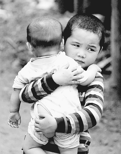 只有6歲的小男孩姚國亮,懷里緊緊抱著1歲多的妹妹姚淑娟,目光平靜地走來。去年8月,舟曲特大山洪泥石流暴發(fā)后,這張新聞?wù)掌钊藙尤,成了舟曲在那場?zāi)難中的經(jīng)典影像之一。