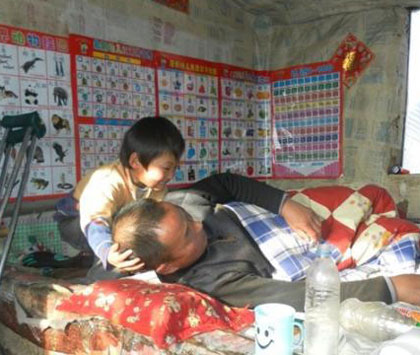 看了4歲女童照料癱瘓雙親的報道后,不禁淚下。女童的母親為多賺點錢,冬季也到冰冷的江里打魚,結(jié)果患上了嚴重的風(fēng)濕,后又患上了腦梗塞。女童的父親為醫(yī)好妻子的病和讓女兒上學(xué),來到哈爾濱市區(qū)打工,在哈爾濱工業(yè)大學(xué)院內(nèi)挖地溝。今年7月26日的一次塌方,把他砸在了4米多深的坑內(nèi)。 在沒有治好的情況下,包工頭把他從醫(yī)院抬回家,并且只給了六萬塊錢了事。妻子被這事一刺激,也全癱了。生活的重擔(dān)一下砸在了4歲的小孫悅身上。