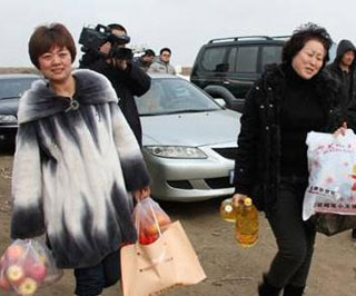 今天是12月5日,被網(wǎng)民稱為最可憐的小女孩——哈爾濱市賓縣經(jīng)建鄉(xiāng)二道溝子村八家子屯的孫悅,家里來了一大堆人,他們拎著大包小裹,這些人一進孫悅的家,就齊唰唰地把這些東西都塞給小孫悅。成袋的大米,成桶的豆油,這么多的掛面,還有蘋果、衣物,一下子就把孫悅家的小土屋裝得滿滿澄澄的。4位小姐姐和小哥哥也把新鞋、新襪子,還有許多兒童食品遞給了孫悅。