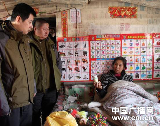 中廣網(wǎng)哈爾濱12月12日消息 (記者唐姣菊 盧飛)這幾天,繼中國廣播網(wǎng)首發(fā)報道了《4歲女童照顧癱瘓父母》的故事后,引起社會廣泛關注,其他媒體也相繼進行轉載和跟蹤報道,感動了全國的網(wǎng)友,小孫悅的故事也一直牽動著我們的心。12月11日,中國廣播網(wǎng)記者又連夜趕到哈爾濱市,今天一早,冒著零下十幾度的嚴寒,驅(qū)車兩個多小時,趕到距哈爾濱市區(qū)一百多公里外的賓縣經(jīng)建鄉(xiāng)二道子村八家子屯,進一步了解小孫悅一家的生活近況。