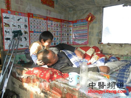 小女孩名叫孫悅,因天天只吃些面糊、米粥和咸菜,顯得有些營養(yǎng)不良。穿得更是破破爛爛,褲子雙腿已經(jīng)從中間撕開了,露出了棉褲。腳下是媽媽穿過的塑料拖鞋。這是記者6日在八家子屯看見她時的印象。當(dāng)時她正在炕上喂媽媽水,舀水的小手略顯粗糙,端得也有些不穩(wěn),但一下一下很是認真。媽媽邊喝邊流淚。披著棉襖依在炕頭另一側(cè)的爸爸孫躍民看到這一切,也是一臉的凄苦和無奈。見記者是生人,喂完水的小孫悅馬上躲進了媽媽的懷里,不時往外瞄幾眼。