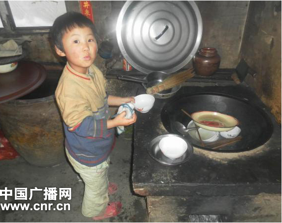 (正在洗碗的四歲女孩孫悅)