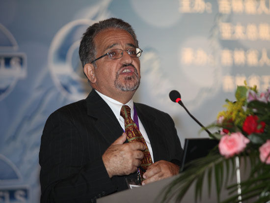 “世界產(chǎn)業(yè)領(lǐng)袖大會(huì)”于2011年9月5日在吉林省長(zhǎng)春市隆重舉行。上圖為北維尼吉亞社區(qū)學(xué)院數(shù)學(xué)、科學(xué)和工程學(xué)習(xí)主任亞伯-埃夫特哈里。(圖片來(lái)源:新浪財(cái)經(jīng) 梁斌 攝)