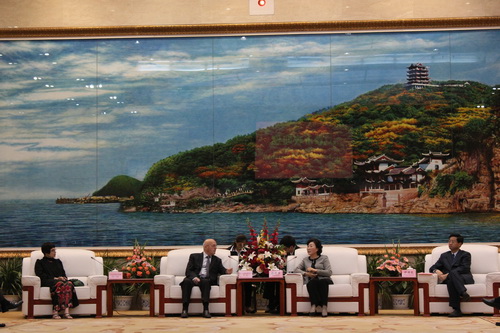 亞太總裁協(xié)會全球副會長、法國前總統(tǒng)參謀長克里斯汀.加諾上將與花建慧、鄭為文等省市領(lǐng)導(dǎo)合影