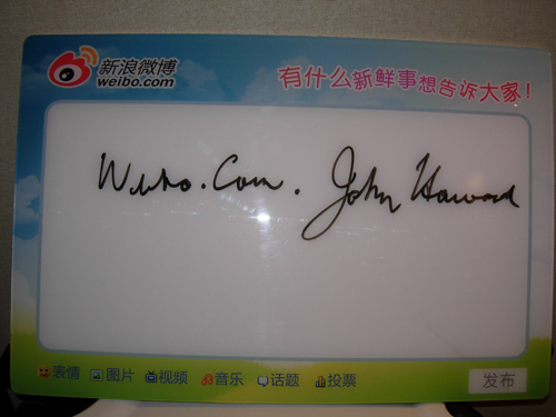 澳大利亞前總理霍華德給新浪微博(weibo.com)的親筆題詞及簽名