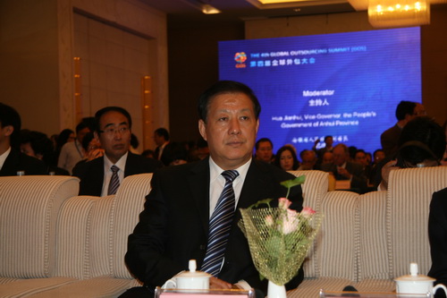 安徽省政府秘書長(zhǎng)梁衛(wèi)國(guó)在第四屆全球外包大會(huì)現(xiàn)場(chǎng)