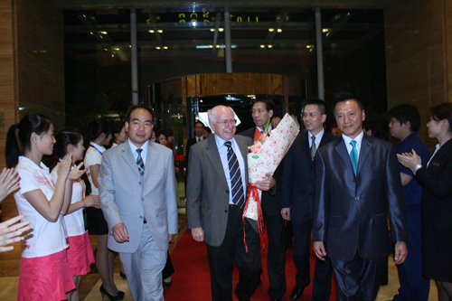 亞太總裁協(xié)會(huì)全球執(zhí)行主席鄭雄偉(左)迎接澳大利亞前總理霍華德(中)