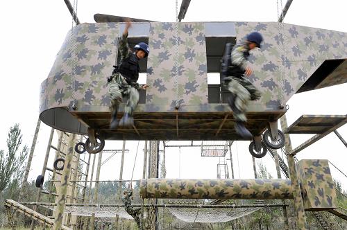 9月5日,武警寧夏總隊(duì)的戰(zhàn)士在進(jìn)行空降反恐演習(xí)。第二屆中阿經(jīng)貿(mào)論壇將于9月21日在銀川開(kāi)幕,目前會(huì)議的安全保衛(wèi)工作已經(jīng)全面展開(kāi)。武警寧夏總隊(duì)的800余名戰(zhàn)士每天都在訓(xùn)練場(chǎng)上苦練各項(xiàng)安保技能,以確保中阿經(jīng)貿(mào)論壇安全召開(kāi)。新華社記者 彭昭之 攝