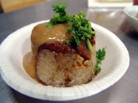 來到臺中縣清水鎮(zhèn),必要嘗嘗地方代表的美食之一—米糕,清水小吃“王塔米糕”走過七十年以上的時(shí)間,是在地代表性的小吃之一,七十多年以來堅(jiān)持品味,炊蒸出的米糕不但香Q,還融合海線風(fēng)味,在銅制的容器里放上幾塊經(jīng)由老板特制烹調(diào)的三層肉、蚵干及少許的蝦米下去蒸炊、在品嘗前淋上源自祖?zhèn)魇址ㄋ{(diào)制出的醬料,入口的米糕香氣四溢、Q軟美味,讓店里總是有絡(luò)繹不絕的人潮。