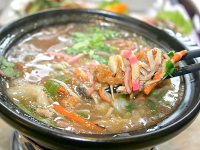 西魯肉是宜蘭名菜之一,指的就是什錦羹,主要材料有大白菜、香菇、紅蘿卜、肉絲等材料,作法是將所有主要食材勾芡,再放上油炸蛋就完成了。