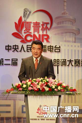 中央人民廣播電臺(tái)臺(tái)長、中央人民廣播電臺(tái)中國勁酒第二屆 “夏青杯”朗誦大賽組委會(huì)主任王求致辭。