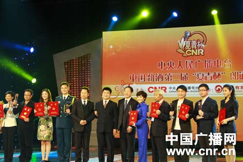 中央人民廣播電臺(tái)副總編輯楊文延、杜嗣琨,為三等獎(jiǎng)獲得者陳鴻、陳振華、王長(zhǎng)軍、郝娟、趙大章、王志華、馮覽光、顧倩、劉靖詩(shī)、姜雷、王天一、洪楷鳴、金之崇頒獎(jiǎng)。