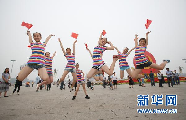 7月1日,來自山東省棗莊市紅巖舞蹈藝術(shù)中心的演員們剛下火車就來到了天安門廣場(chǎng)。當(dāng)日,來自全國(guó)各地的數(shù)萬名群眾匯聚北京天安門廣場(chǎng),觀看隆重的升旗儀式,紀(jì)念中國(guó)共產(chǎn)黨成立90周年。 新華社發(fā)(萬象 攝)