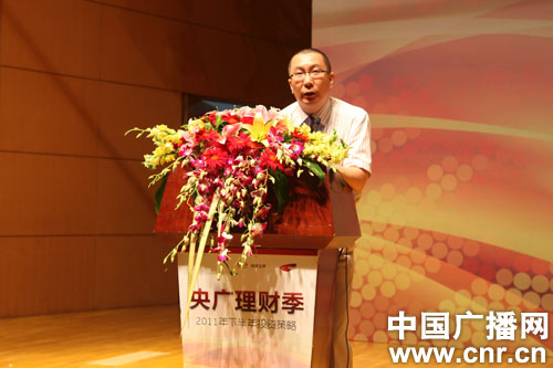 “央廣理財(cái)季”17日隆重起航,以2011年下半年投資策略為主題;顒蝇F(xiàn)場將以貼近民生的理財(cái)話題為主題,以聽眾+專業(yè)理財(cái)嘉賓+經(jīng)濟(jì)之聲王牌主持的現(xiàn)場交流互動為形式,為聽眾與專家搭建零距離互動交流平臺。圖為西南證券首席策略分析師張剛現(xiàn)場講解2011下半年投資策略——板塊的選擇。(中廣網(wǎng)記者 任芳 攝)