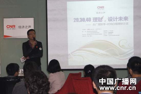 10月22日,“20,30,40, 理財(cái),設(shè)計(jì)未來”---央廣理財(cái)季時(shí)尚白領(lǐng)理財(cái)沙龍,助您增值財(cái)富,實(shí)現(xiàn)夢(mèng)想!圖為央廣理財(cái)季活動(dòng)現(xiàn)場(chǎng)。中央人民廣播電臺(tái)經(jīng)濟(jì)之聲主持人王冠。((中廣網(wǎng)記者 楊雁霞 攝)