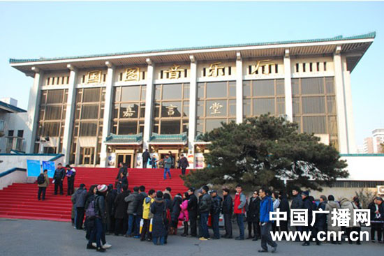 寒風(fēng)沒有擋住一股熱浪,圖書館音樂廳前排起了領(lǐng)票進(jìn)場的長龍。