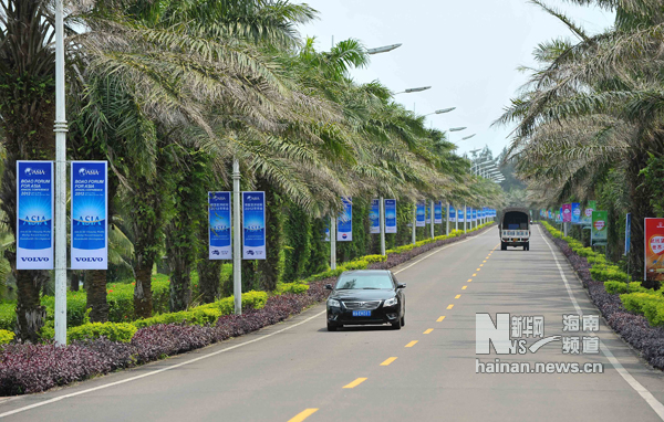 這是裝飾一新的博鰲遠(yuǎn)洋大道(3月26日攝)。