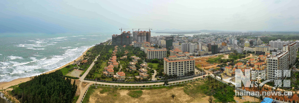 這是博鰲鎮(zhèn)沿海景觀,各類高檔酒店、樓盤鱗次櫛比(3月26日攝,拼接照片)。