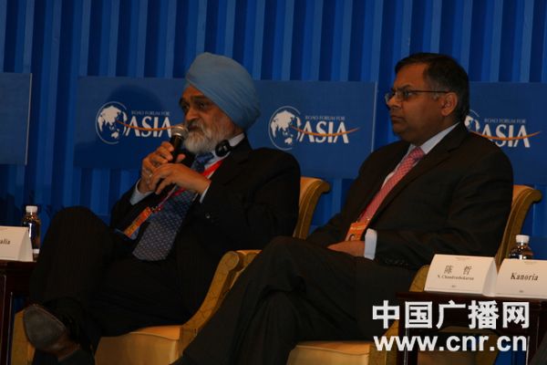 印度計(jì)劃委員會(huì)副主席Ahluwalia及塔塔咨詢CEO陳哲。中廣網(wǎng)記者祁亞楠 攝