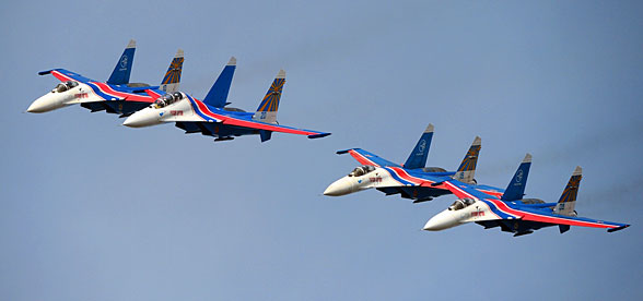 航展:俄“勇士”一字低速飛行 似紳士漫步