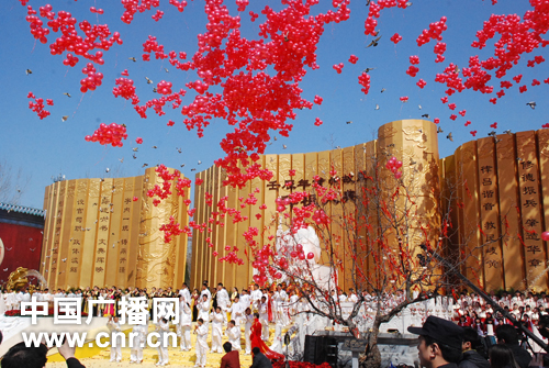 中廣網(wǎng)河南分網(wǎng)消息 2012年3月24日,農(nóng)歷三月初三,中華兒女共同關(guān)注的壬辰年黃帝故里拜祖大典在新鄭市隆重舉行。來自海內(nèi)外的各界嘉賓萬余人喜聚盛典,拜謁中華民族的始祖軒轅黃帝,共同祈福華夏繁榮昌盛,祝愿世界和平。為讓海內(nèi)外華人等炎黃子孫都有機(jī)會進(jìn)行拜祖,黃帝故里景區(qū)在大典結(jié)束之后將面向全體市民開放,以滿足群眾“三月三、拜軒轅”的心愿。