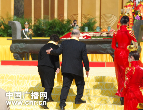 受邀參加壬辰年黃帝故里拜祖大典的中國國民黨榮譽(yù)主席吳伯雄及其夫人敬獻(xiàn)了頭香。