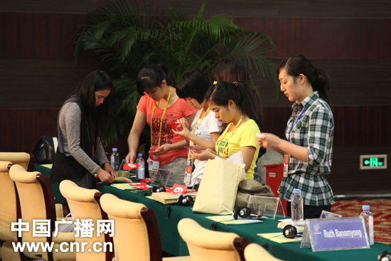 2011年10月21日,第八屆中國-東盟商務(wù)與投資峰會將在廣西南寧開幕。10月20日,廣西的大學(xué)生志愿者們正在布置第八屆中國-東盟商務(wù)與投資峰會現(xiàn)場。中廣網(wǎng)記者李沛攝
