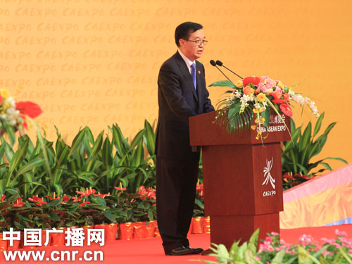 中國商務(wù)部副部長高虎城致辭(中廣網(wǎng)記者張卓 攝)