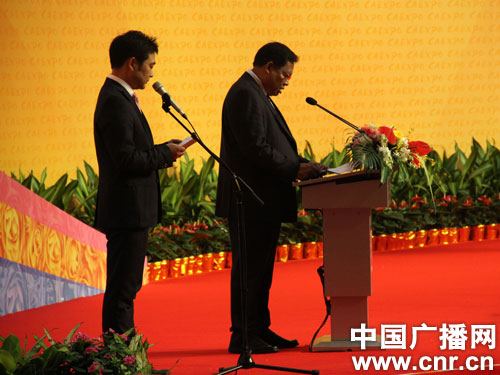 緬甸商務(wù)部部長(zhǎng)主持開幕式(中廣網(wǎng)記者張卓 攝)