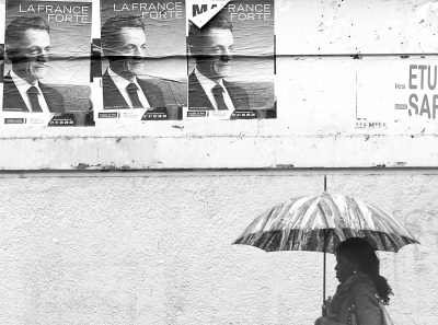 圖為4月10日,在法國(guó)巴黎街頭,一名女子走過現(xiàn)任總統(tǒng)、人民運(yùn)動(dòng)聯(lián)盟候選人薩科齊的競(jìng)選海報(bào)。新華社發(fā)