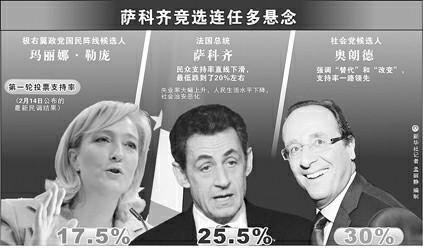 然而近3個多月以來,薩科齊在所有的民意測驗中都遠遠落后于奧朗德。這一落后已經(jīng)開始影響到薩科齊陣營的士氣和人氣,以至于在任總統(tǒng)不得不重新考慮自己的競選戰(zhàn)略。據(jù)消息人士透露,上周薩科齊在其競選顧問的推動下,本來決定本周末在執(zhí)政黨召開首次競選大會時宣布參選。但前幾天發(fā)現(xiàn),奧朗德在周三晚有一次競選大會。薩科齊陣營的競選專家們擔(dān)心,如果再讓奧朗德繼續(xù)領(lǐng)先的話,薩科齊陣營將難以在最后兩個月內(nèi)逆轉(zhuǎn)形勢。因此最后緊急決定提前宣布參選,時間就定在奧朗德競選大會的同一晚。