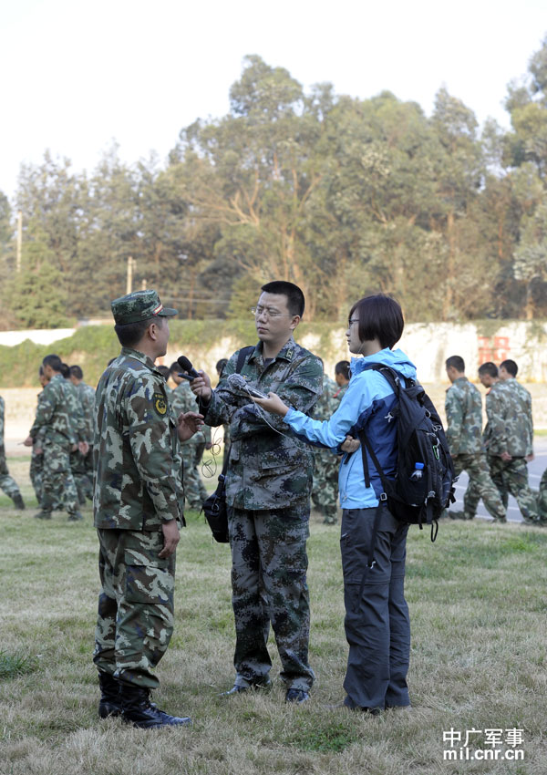 中央臺(tái)記者陳欣、周堯采訪武警云南省總隊(duì)第三支隊(duì)基層官兵(中央臺(tái)記者劉鵬攝)