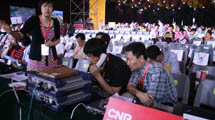 第四屆海峽論壇,中央人民廣播電臺工作人員在調(diào)試設(shè)備