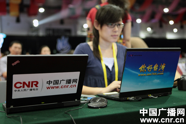 中央臺工作人員在整理稿件(中廣網(wǎng)記者 李雪南攝)