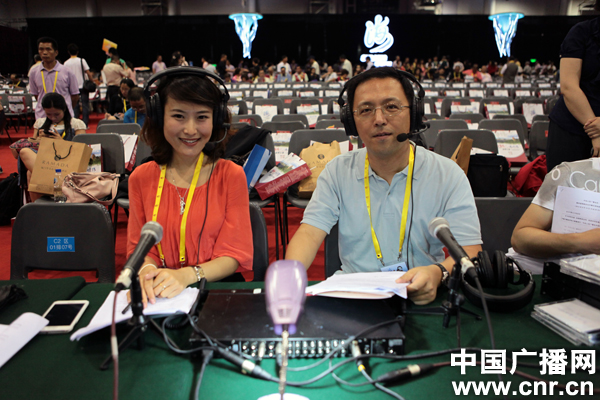 中央人民廣播電臺主持人曲飛(左)賈旭東(右)(中廣網(wǎng)記者 李雪南攝)