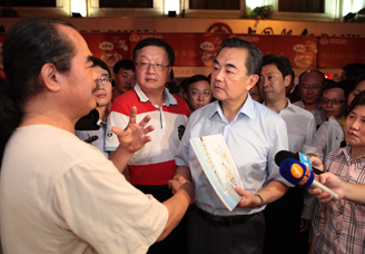 6月17日晚,正在廈門(mén)出席第四屆海峽論壇的國(guó)務(wù)院臺(tái)辦主任王毅參觀了在廈門(mén)市中山路舉行的臺(tái)灣特色廟會(huì),與參展的臺(tái)灣民眾親切交流,體驗(yàn)富有特色的臺(tái)灣廟會(huì),品嘗原汁原味的臺(tái)灣小吃。(中廣網(wǎng)記著 李雪南攝)
